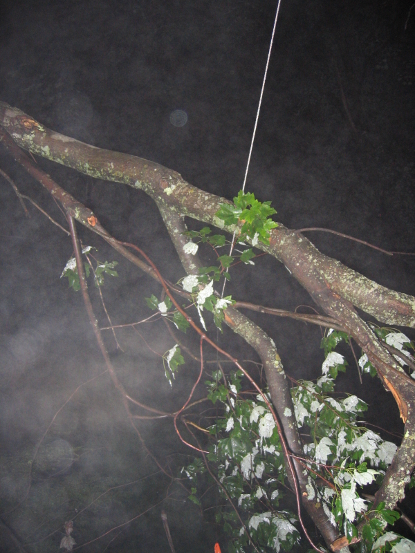 One of the maple trees in our yard has been broken off and has fallen onto the guy wires of the outdoor aerial rig
